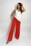 Однотонний комплект жіночий виробник Kosta відносить до домашнього виду одягу або сну. З боків кожної штанини розташований невеликий розріз. Низ та розріз мають хвилясте оздоблення, що надає моделі легкості. На верху бридж вшита тонка резинка, яка не виділяється.